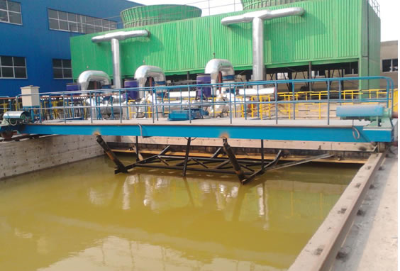 產品概述:行車式撇油撇渣機應用廣泛,主要通過移動刮板將池子表面漂浮的油類、浮渣等通過刮集到集渣槽排出,實現油水分離、渣水分離的目的。主要包括工作橋、驅動裝置、刮渣裝置、電控系統、軌道系統等。特點:刮集效率高、運行穩定、維護操作方便,成本低。